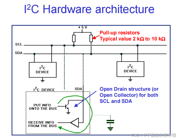 - I2C是真正的多主设备总线,可提供仲裁和冲突检测;
