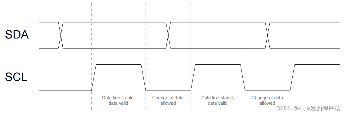 - 如果SDA线为高电平,则可以安全地发送消息。
