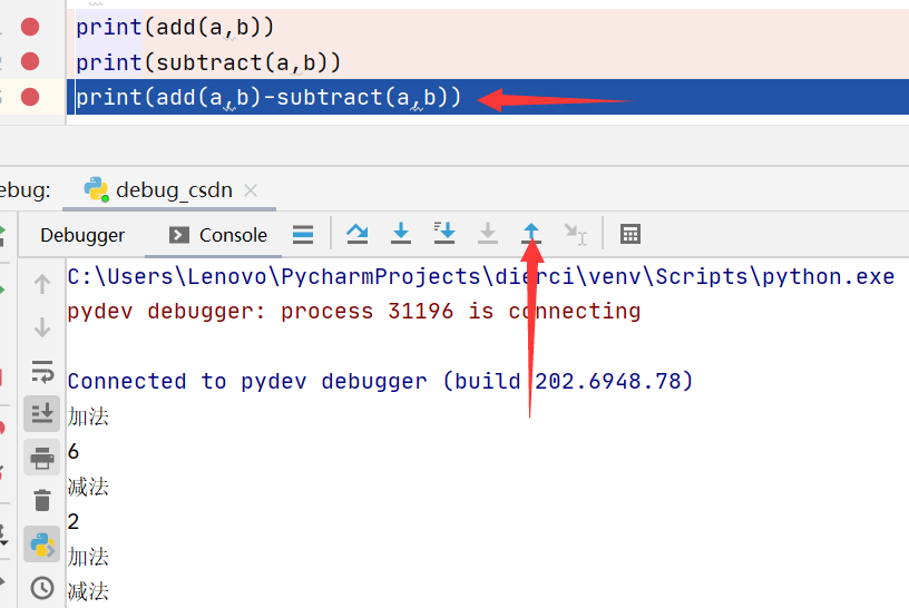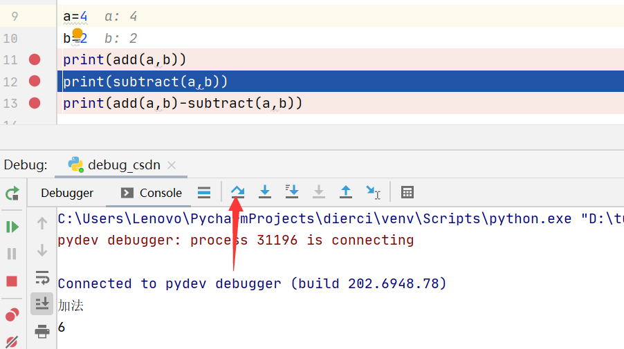若函数A内存在子函数a时,会进入子函数a内执行单步调试。也就是当点击这个按钮,那么就会跳转到你当前debug的方法里面去。