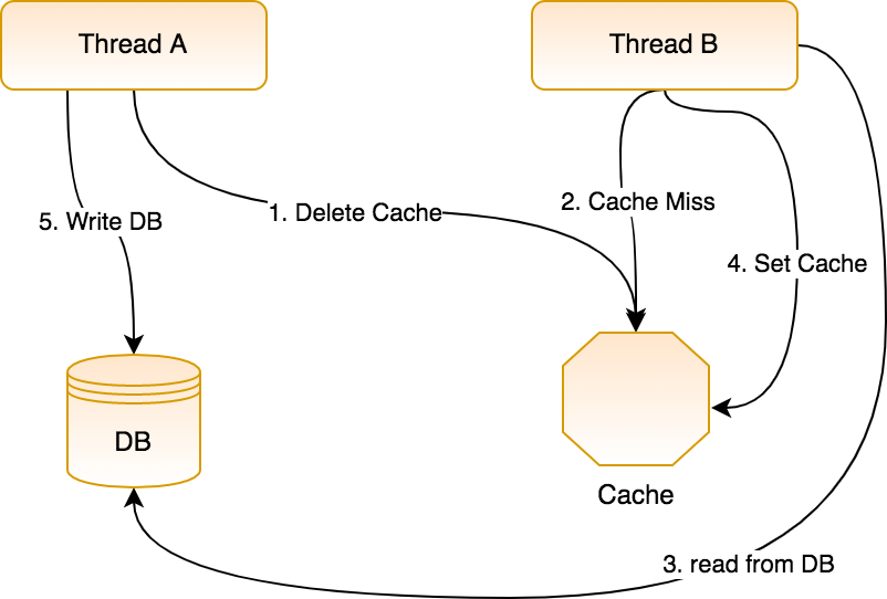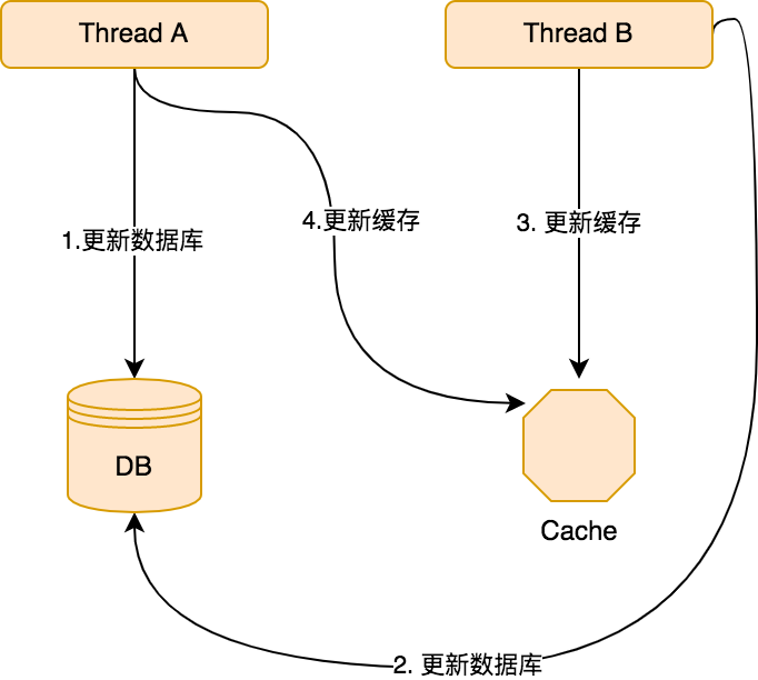 - 先更新数据库再删除缓存:当请求 A 更新数据库之后,还未来得及进行缓存清除,此时请求 B 查询到并使用了 Cache 中的旧数据。