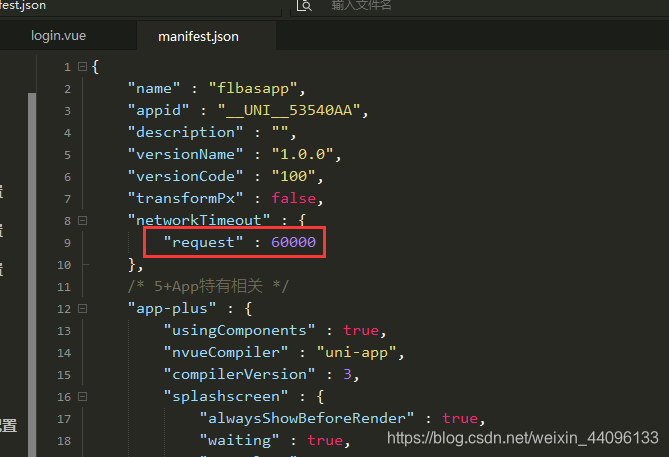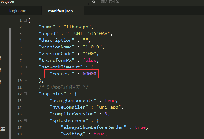 最后发现在manifest.json里可以设置请求时间,如果网络不稳定超过请求时间还没有获得回应,就会出现请求超时,具体设置如图