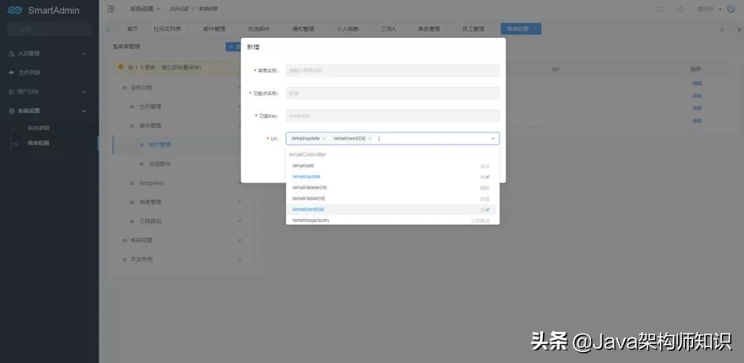 - 其他功能:邮件、富文本、消息、系统配置等等