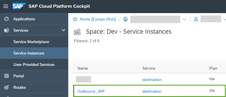 在SAP云平台CloudFoundry环境里创建一个Destination服务实例: