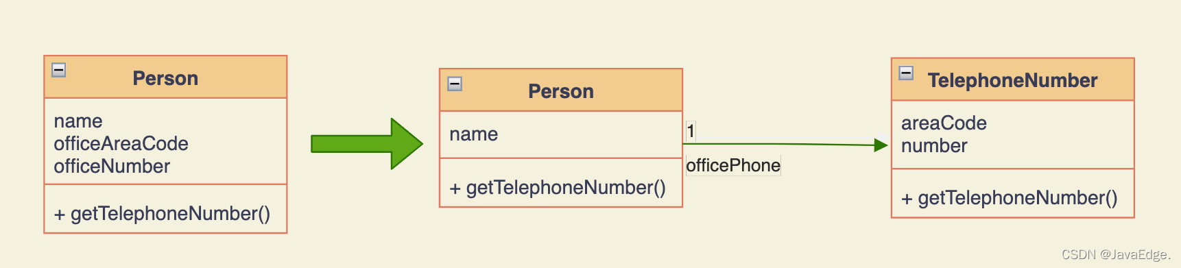 移动其它字段,并用 move method将相关方法移动到TelephoneNumber