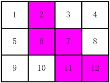 有12张连在一起的12生肖的邮票。现在你要从中剪下5张来,要求必须是连着的。(仅仅连接一个角不算相连)比如: