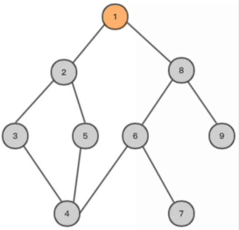 从树的根节点1开始,会发现1的子节点有2、8两个子节点,进程会先对这两个节点进行访问然后再访问其的子节点