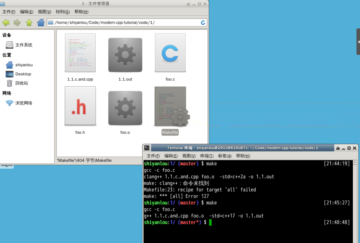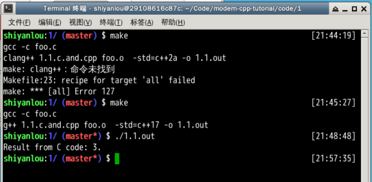 clang++修改为g++,c++2a修改为c++17。