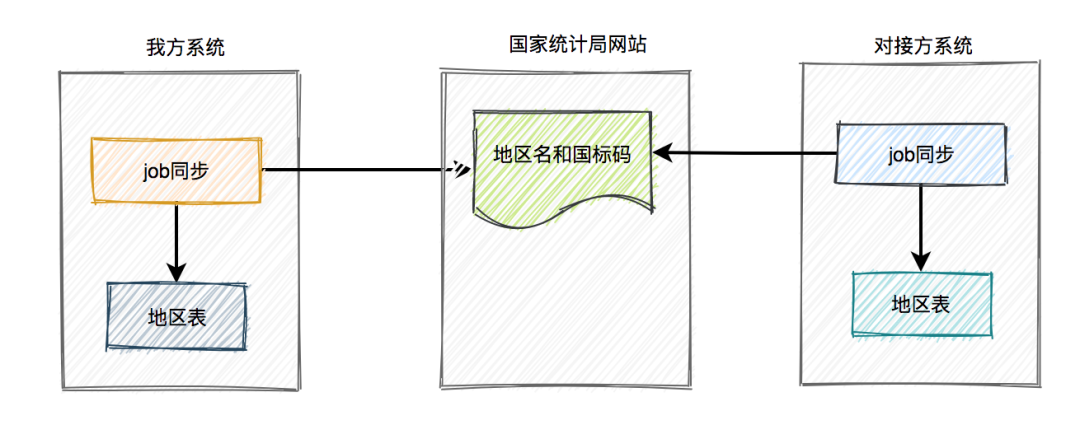 他们的想法是:在企业信息上传接口中,入参由企业注册地id改成企业注册地国标码,由于国标码是国家统一的唯一编码,双方肯定是一样,能保证数据的一致性。