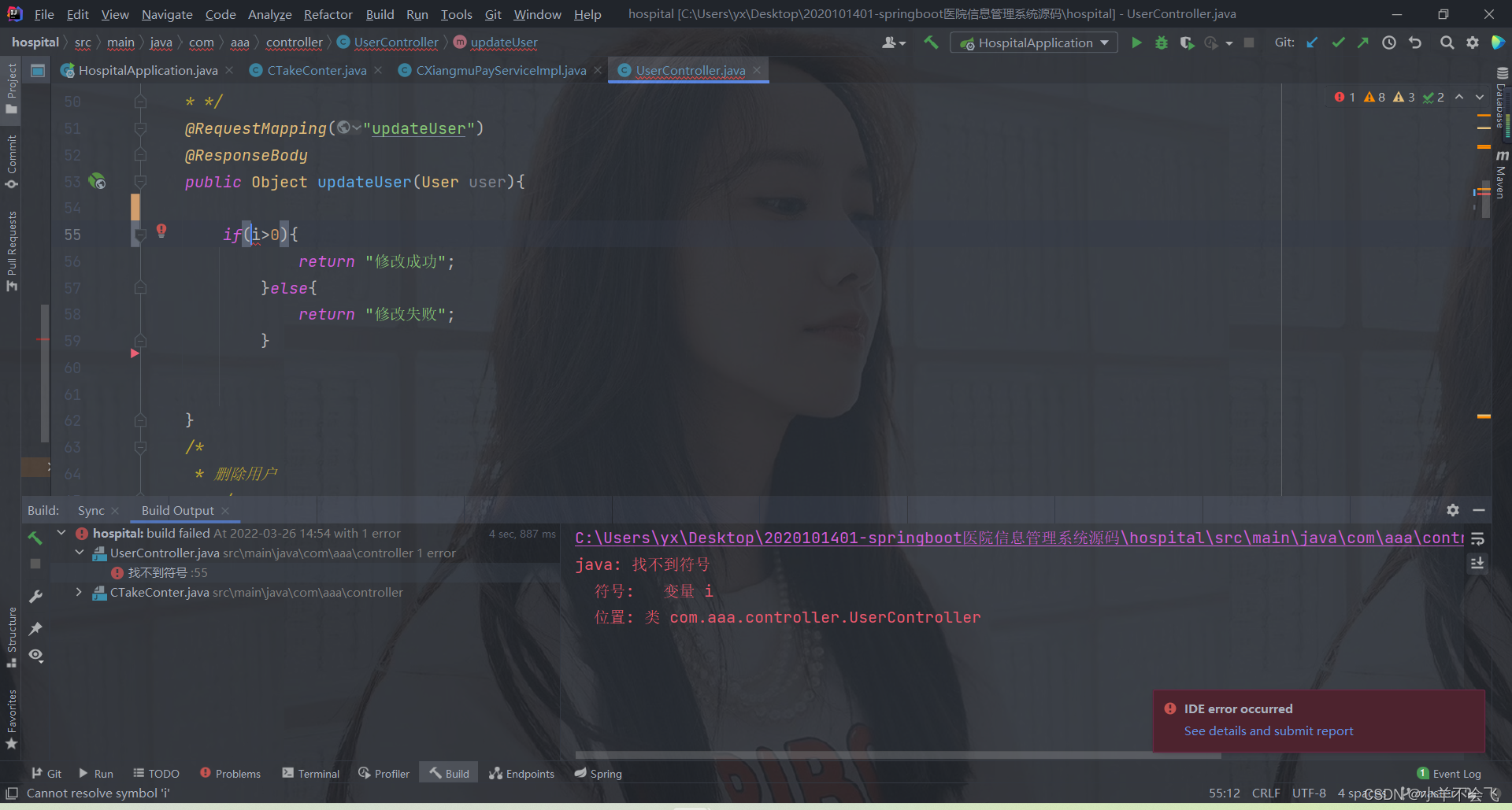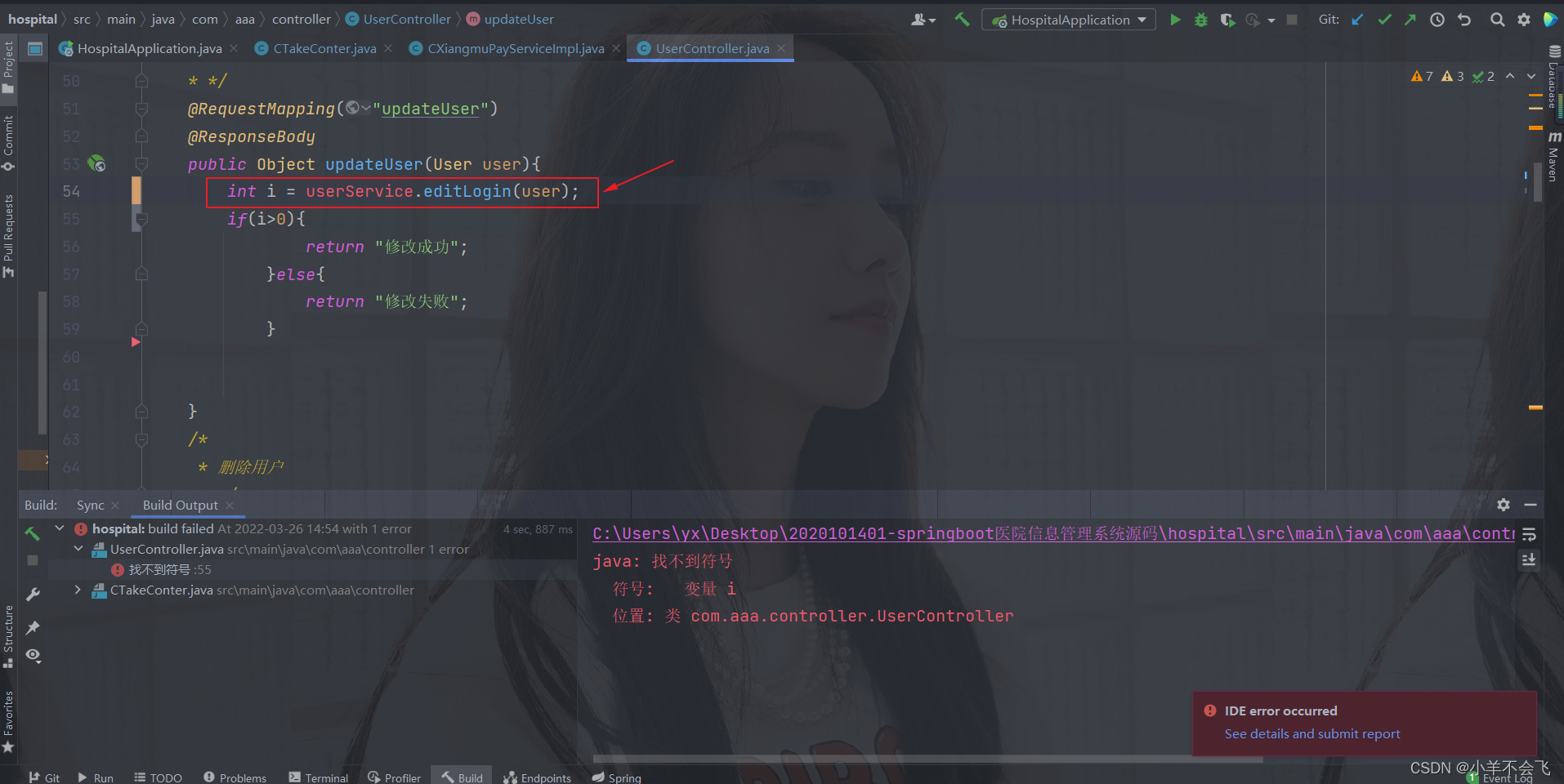 不出意外,当你刚把项目导入idea的时候,跟博主的遭遇是一样一样的,不过遇事不要慌,这里显示找不到变量符号,我猜应该是开发人员在开发的时候漏写了又或者是在项目开源转移的过程中不小心被删掉了,我们自己加一行代码即可!