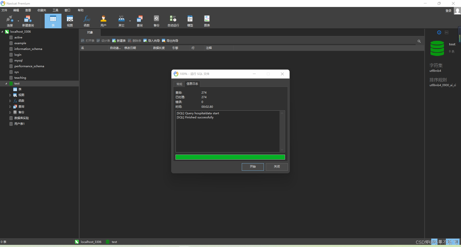 运行成功后,刷新一下数据库,所有的数据库文件就成功导入进来了,如下图所示: