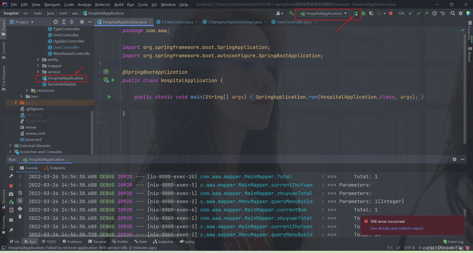 打开HospitalApplication类,然后运行一下!!!