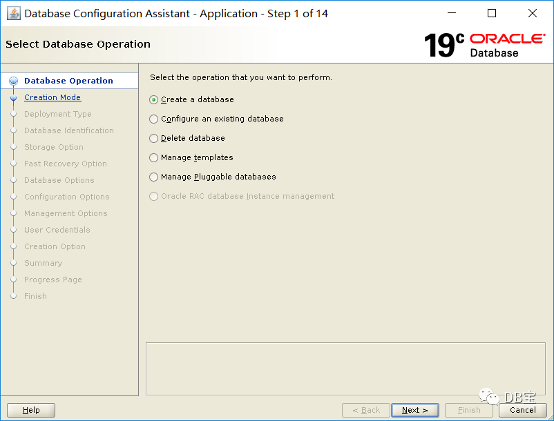 本节给大家讲解如何使用dbca图形化界面来创建数据库,这个其实就是界面下一步下一步就可以安装完成。