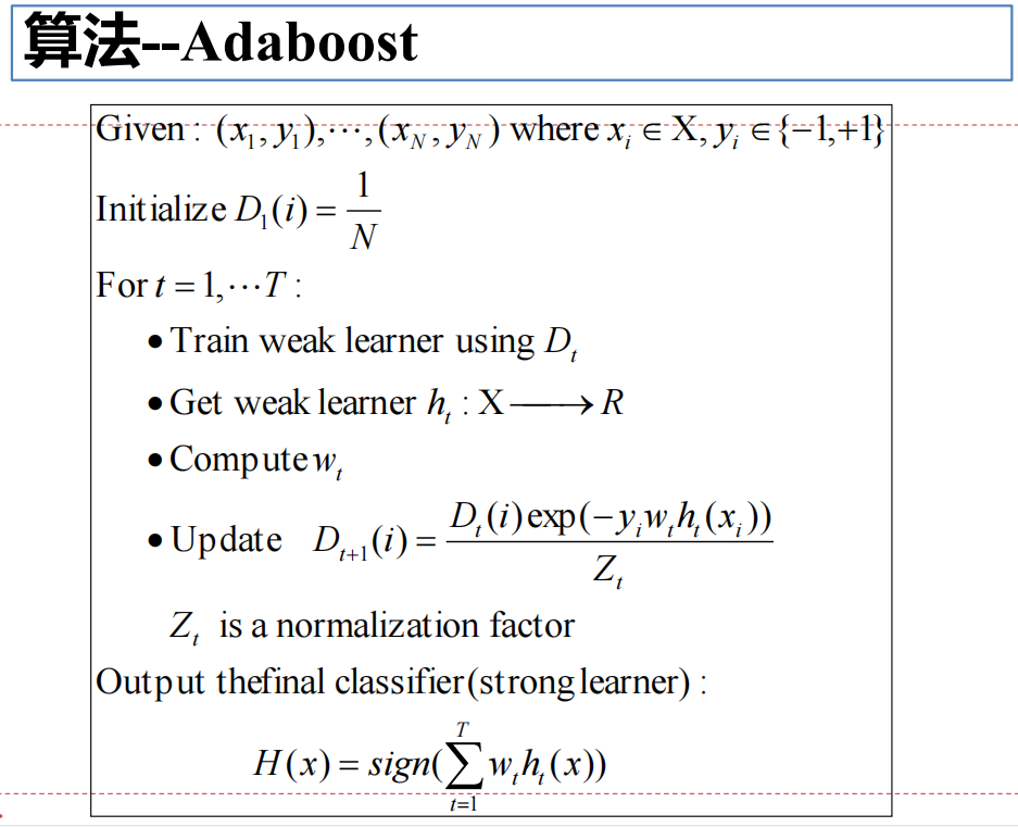 初始化时, Adaboost为训练集指定分布为1 /n, 即每个训练例的权重都相