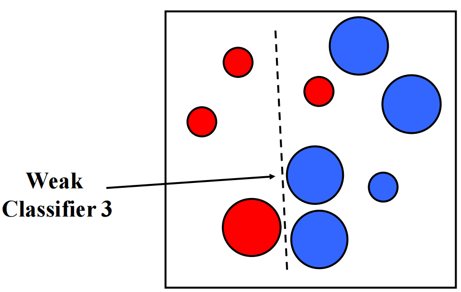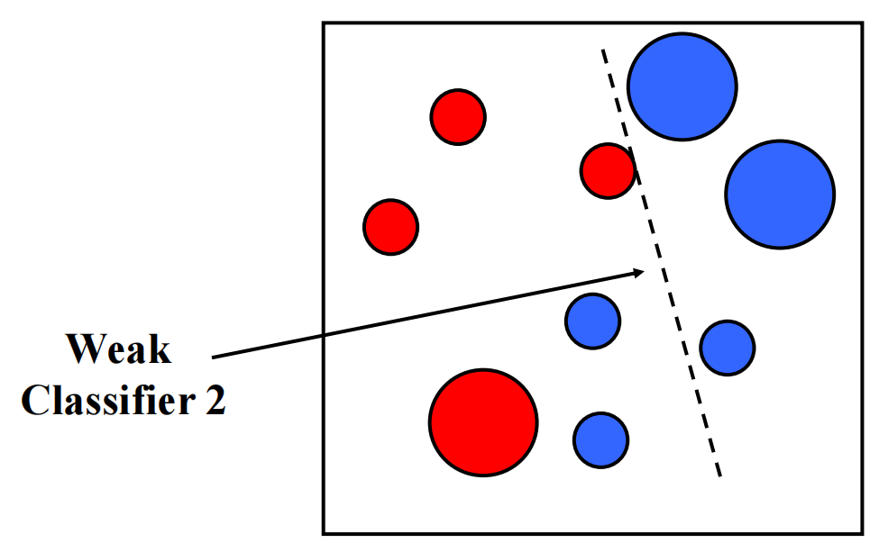 增大, 使得下一次循环的弱学习机能够集中力量对这些错误样本进行