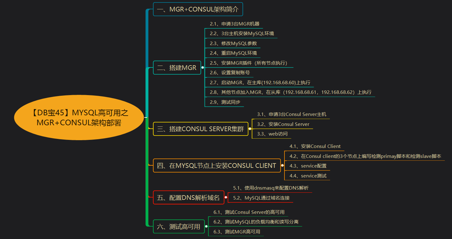 基于目前存在很多MySQL数据库单点故障,传统的MHA,PXC等方案用VIP或者DNS切换的方式可以实现、基于数据库的数据强一致性考虑,采用MGR集群,采用consul服务注册发现实现应用端通过动态DNS 访问MGR集群,实现数据库高可用,自动化切换的方案。