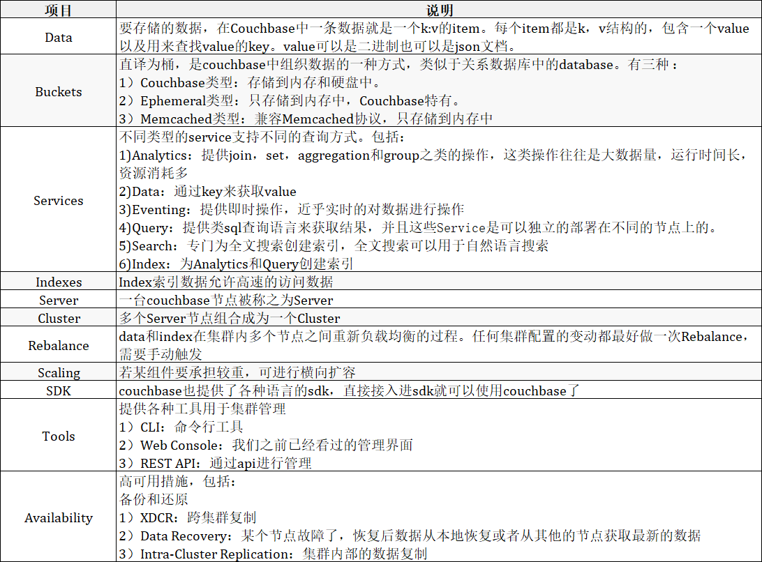 vBucket: 相当于Key的子集,保存的是key的值, CouchBase是JSON型数据库,没有表的概念。