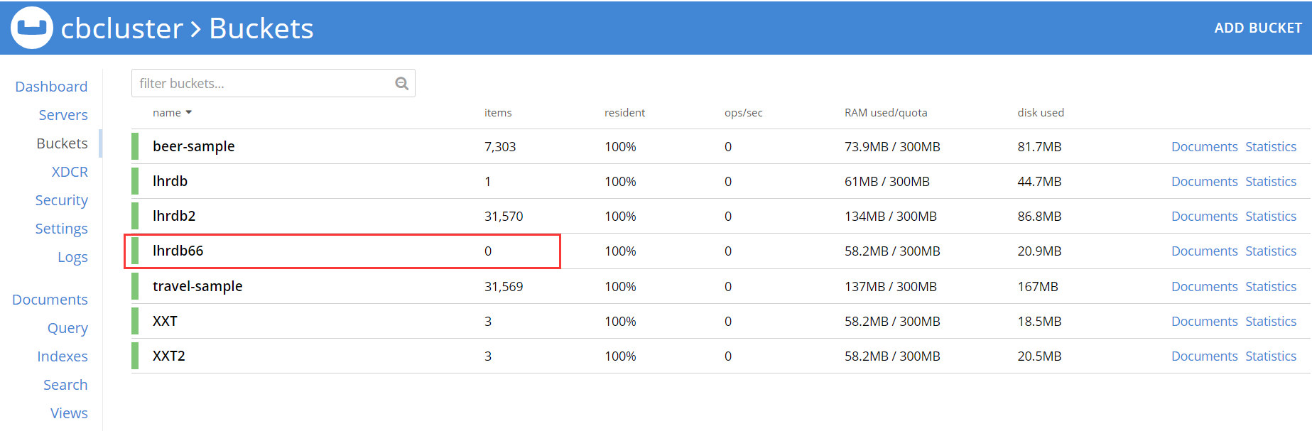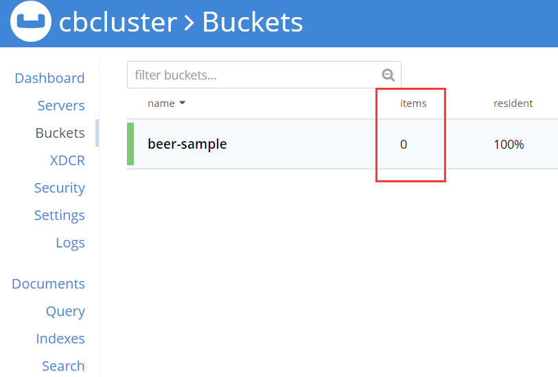 首先删除要还原的桶beer-sample,然后创建一个空的桶beer-sample:
