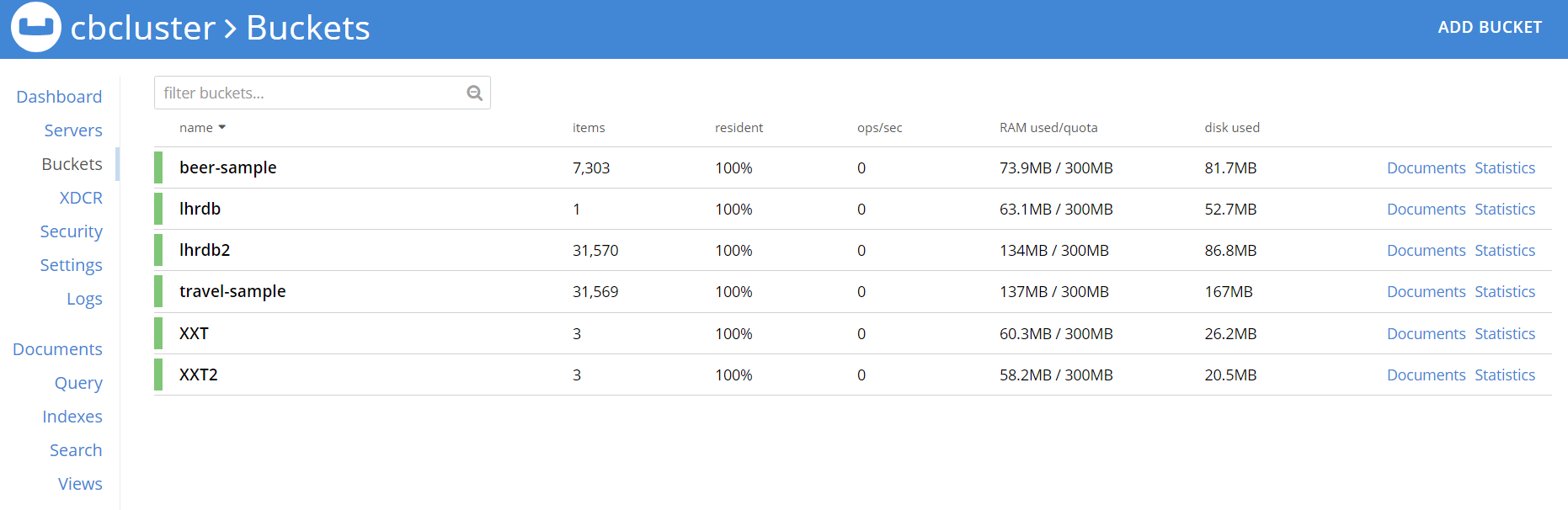 Bucket: 相当于关系型数据库中的库,保存JSON文档。