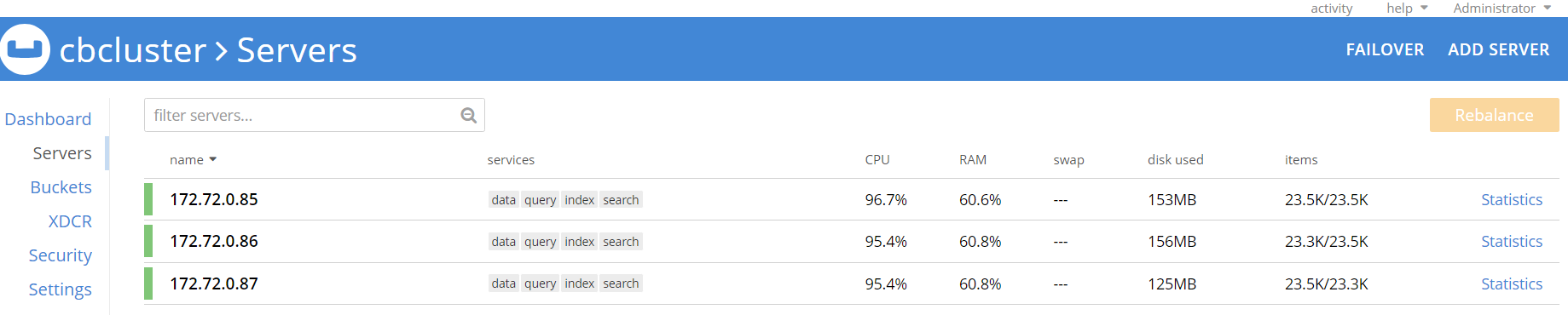 Couchbase 群集所有点都是对等的,只是在创建群或者加入集群时需要指定一个主节点,一旦结点成功加入集群,所有的结点对等。
