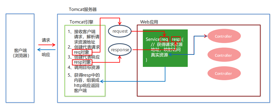 需求:客户端发起请求,服务器端接收请求,执行逻辑并进行视图跳转。