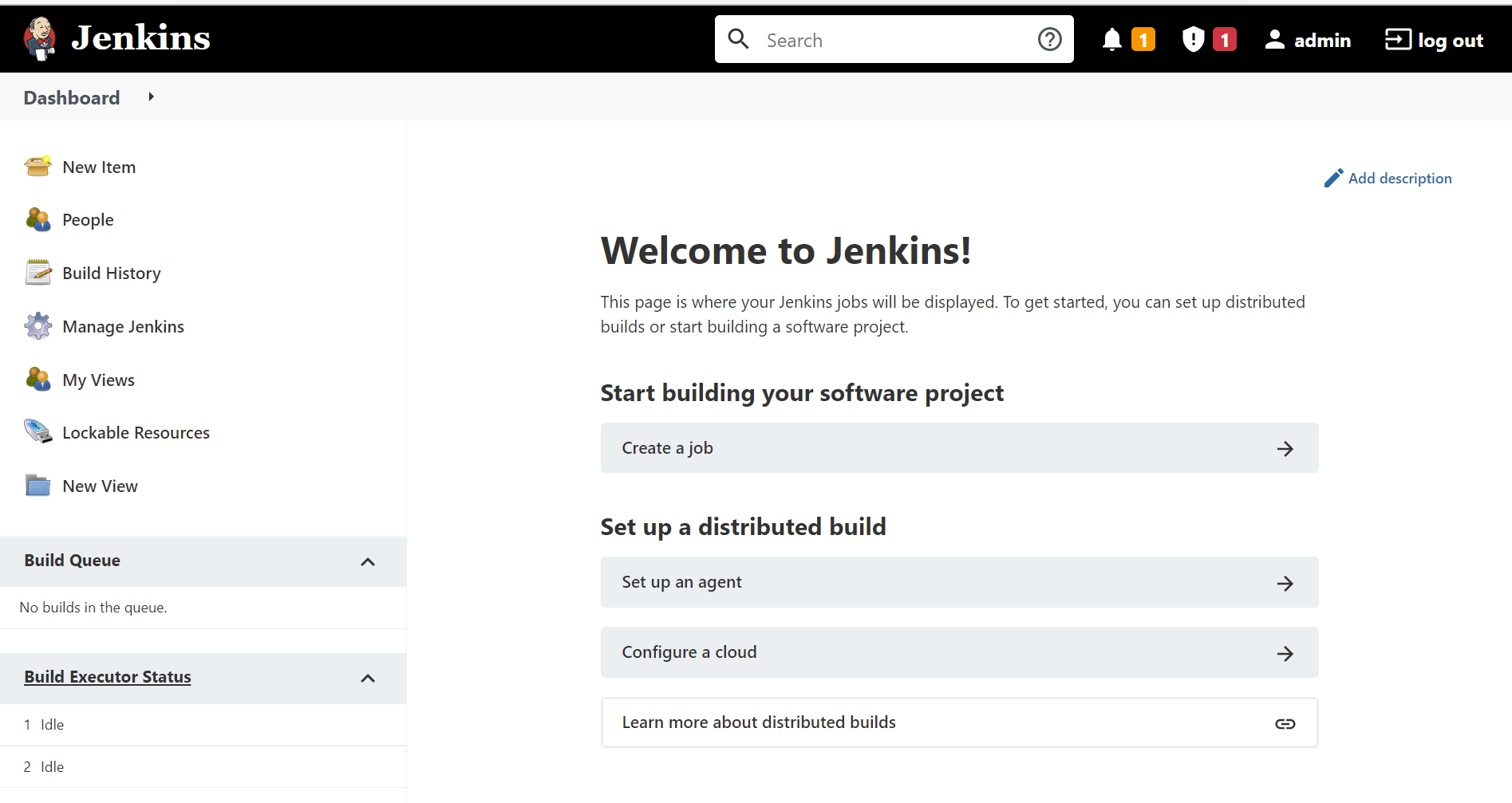7. 点击开始使用即可跳转到jenkins首页,开始我们的工作任务了。