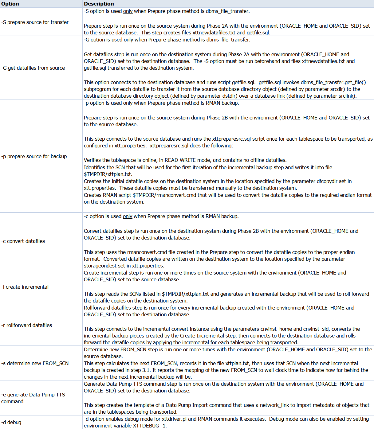 1)dbms_file_transfer(DFT) – (using xttdriver.pl -S and -G options)
