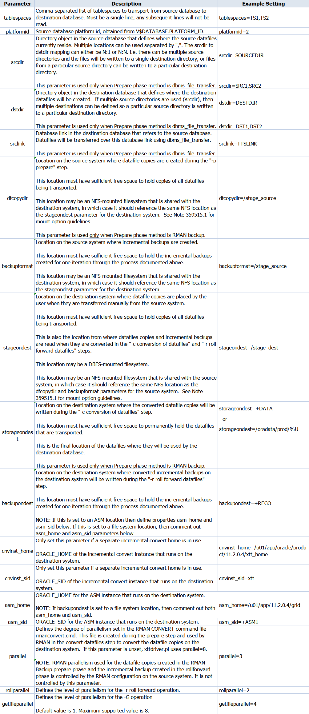 - 12c – 使用跨平台增量备份来减少传输表空间的停机时间 (文档 ID 2102859.1)