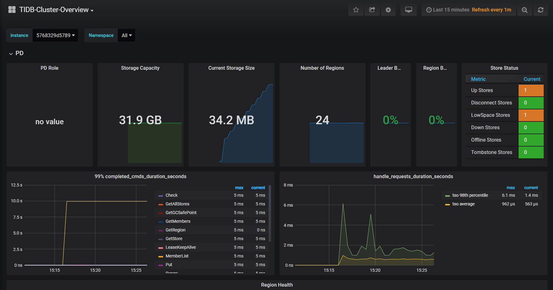 f132ec8ae049 pingcap/pd:latest "/pd-server --name=p…" 20 minutes ago Up 32 seconds 2380/tcp, 0.0.0.0:1028->2379/tcp tidb-docker-compose_pd1_1