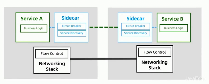 - 由Sidecar完全接管发送到应用的请求,处理完成之后再发送到另外的微服务,是对应用内部的网络细节进行描述。