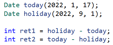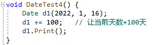 加完后,d1 的日期就是加了100天之后的日期了,我们这里要实现的就是这个功能。