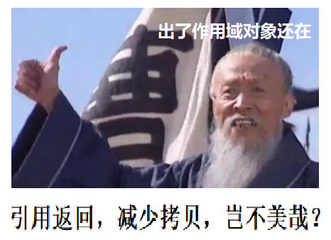 因为出了作用域对象还在,我们可以使用引用返回减少拷贝,岂不美哉?