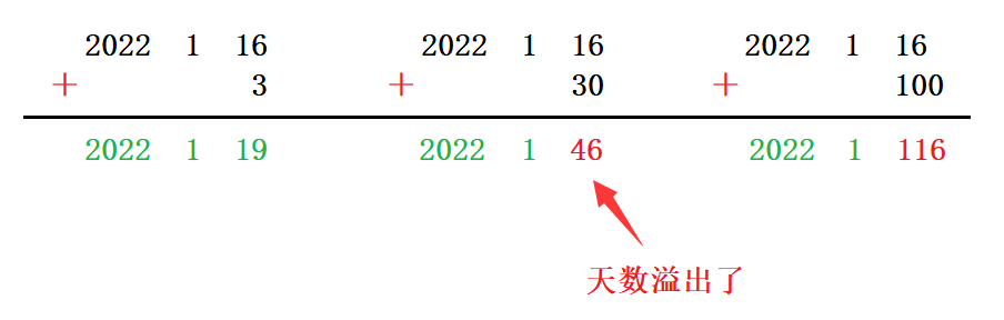 如果不合法,我们就进位。天满了往月进,月再满就往年进。