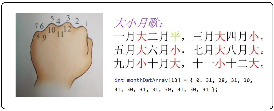 根据我们小时候背的口诀,依次把日期填到数组中就行了。