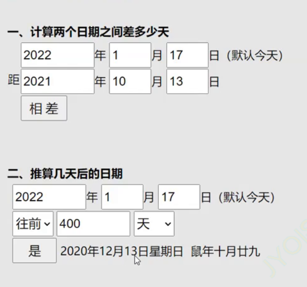 Tips:我们在验证的时候可以再网上找这种在线的日期推算器,来验证一下我们写的对不对。