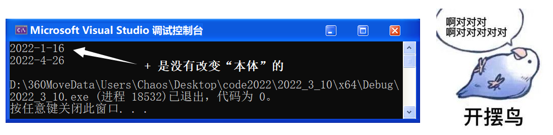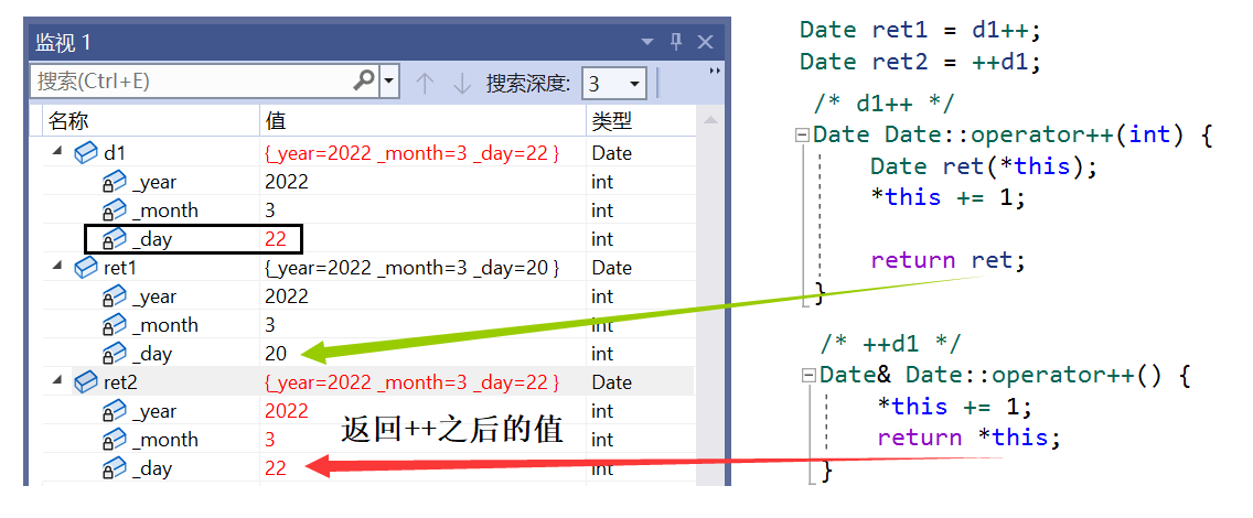 出了作用域 *this 还在,所以我们可以使用引用返回 Date& 。