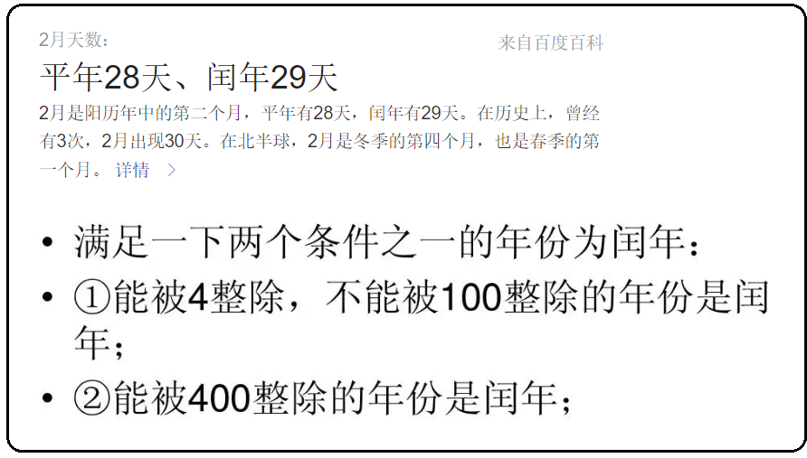 是不是没有那么容易一眼看出来了?这都涉及到闰年的问题了。
