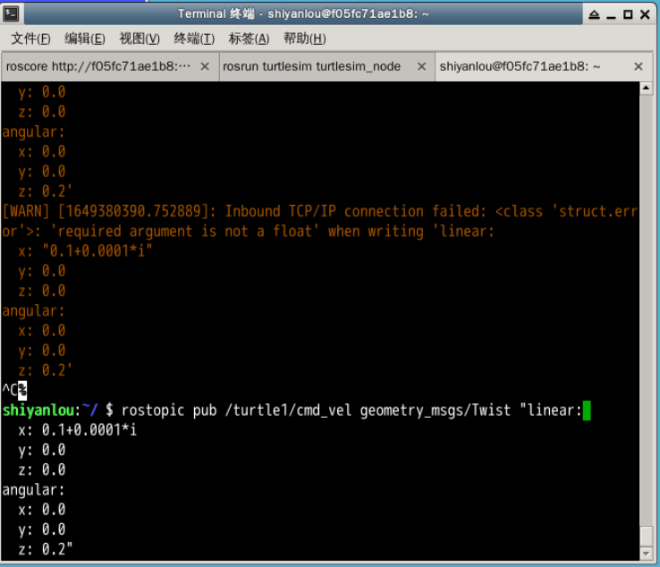 ROS_INFO("Publsh turtle velocity command[%0.2f m/s, %0.2f rad/s]",