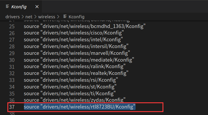 修改Linux-4.9.88/drivers/net/wireless文件夹下的Kconfig及Makefile文件。