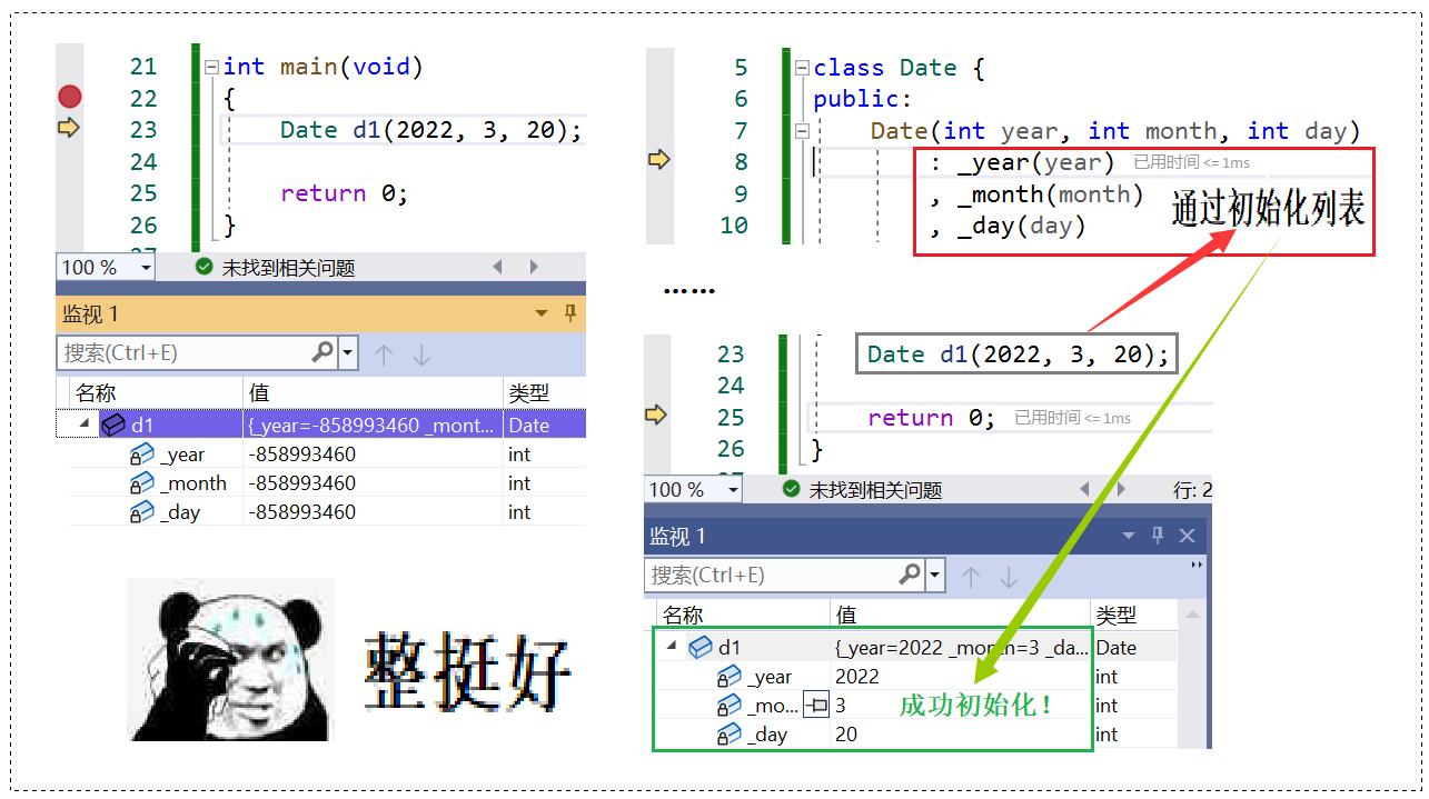基于这种原因,C++ 就搞出了一个叫做初始化列表的东西。