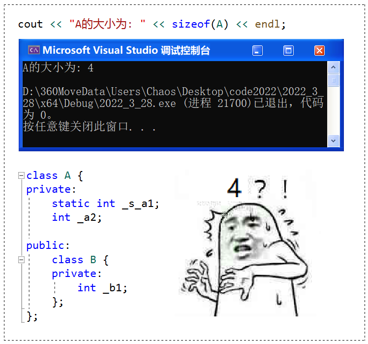 ❓ 我们用 sizeof 计算 A 类的大小,得到的结果会是什么?