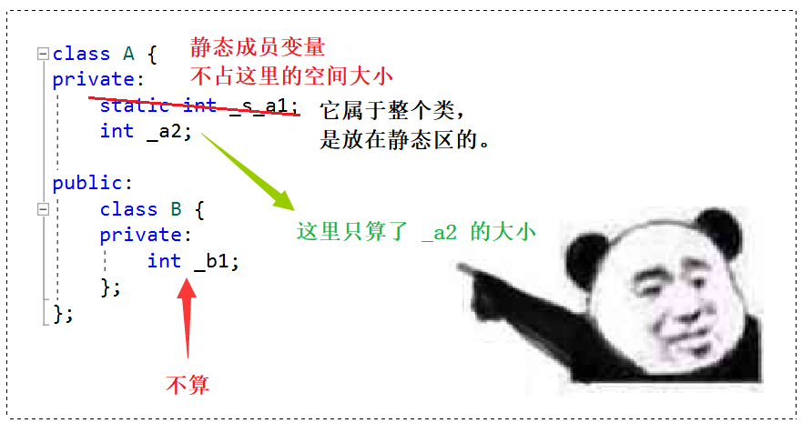 所以,A 类型的对象里没有 B,跟 B 没什么关系,计算 sizeof 当然也不会带上B。