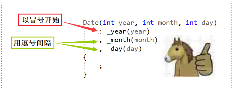 📚 初始化列表:以一个冒号开始,逗号间隔的数据成员列表。每个成员变量后面跟一个放在括号中的初始值或表达式。