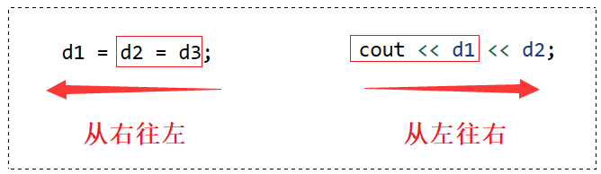 连续插入 d1 和 d2 实际上就是两次函数的调用,这里先执行的是 cout << d1,