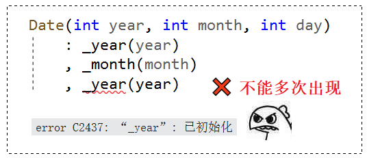 ① 初始化列表 - 成员定义变量的地方。初始化只能初始化一次。
