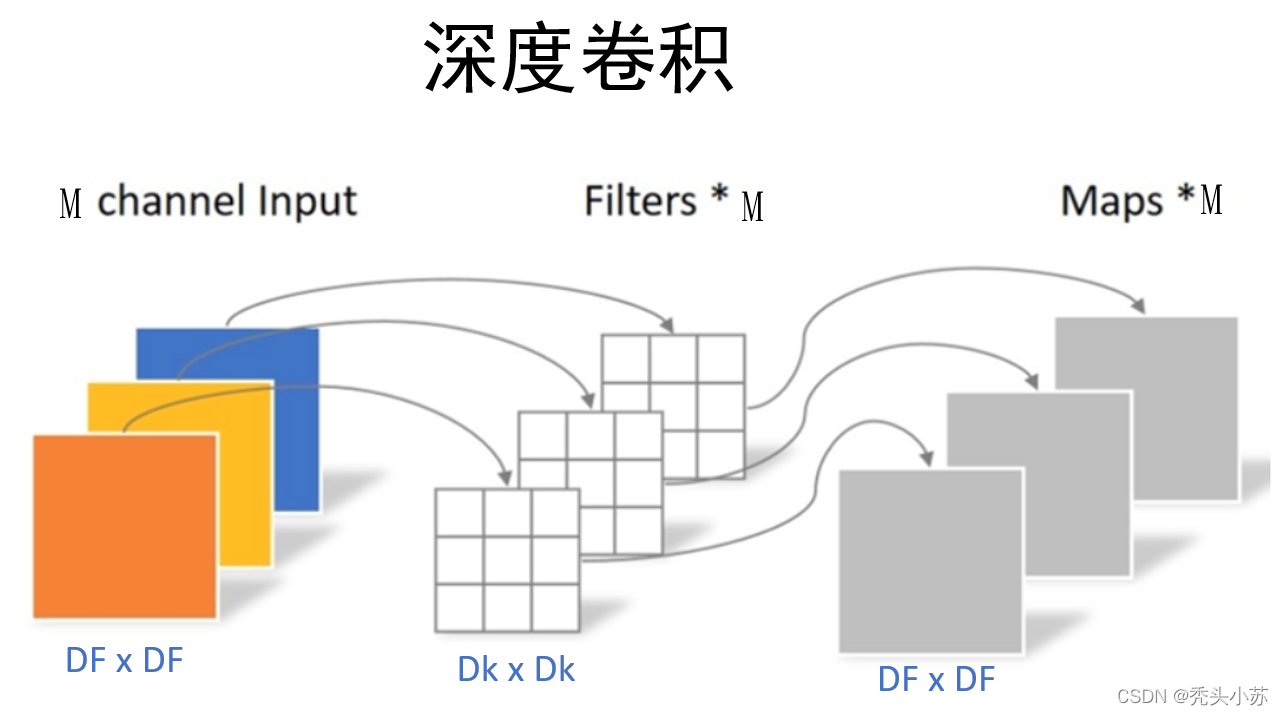 因此深度可分离卷积的参数量为DK x DK×MxDF x DF+MxNxDF x DF。