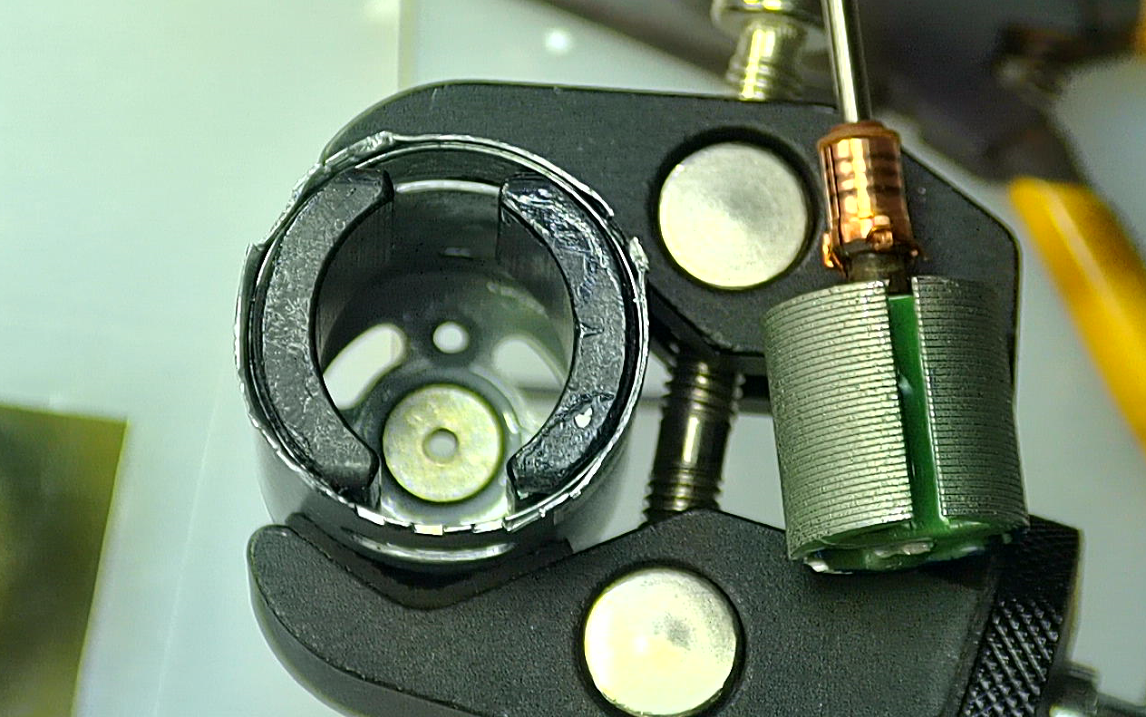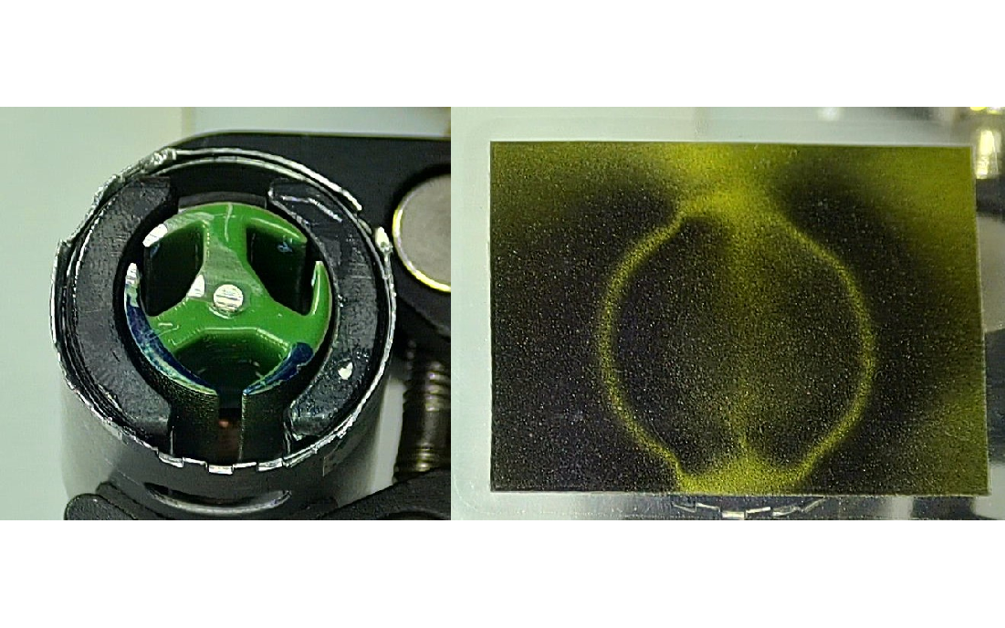| 在对于小型直流电机力矩分析的过程中, 曾经测试小型直流电机内部的磁场。 现在使用磁场观察膜观察一下其内部的磁场分布。 对比带有转子和没有转子下内部磁场的方向。 |