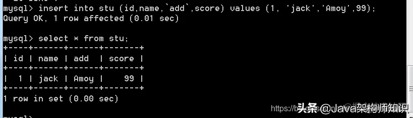 语法: insert into 表名(字段名,字段名,…) values(值1,值2,…);