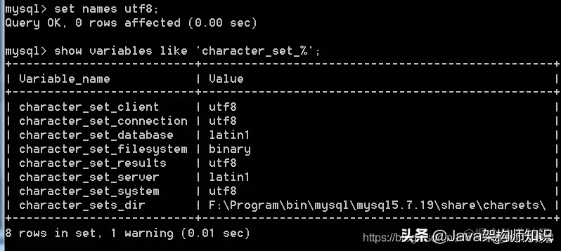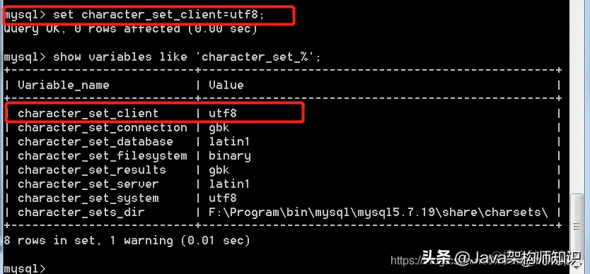 更改接收客户端指令编码: set character_set_client=编码格式; :