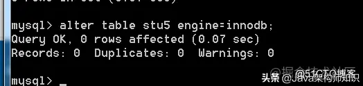 现在stu5的引擎为myisam,现在给他修改为innodb。