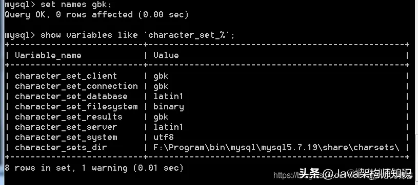 可以使用命令 set names gbk; 将服务端,所有编码全部都以gbk的编码形式。